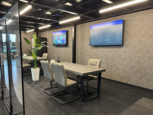 本社1階のショールームにて、ゆっくりお車をご覧いただけます。また、お客様が安心してお車のご相談をしていただけるよう、くつろぎの応接ルームをご用意しています。